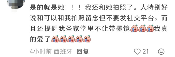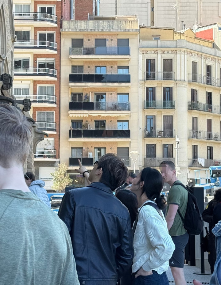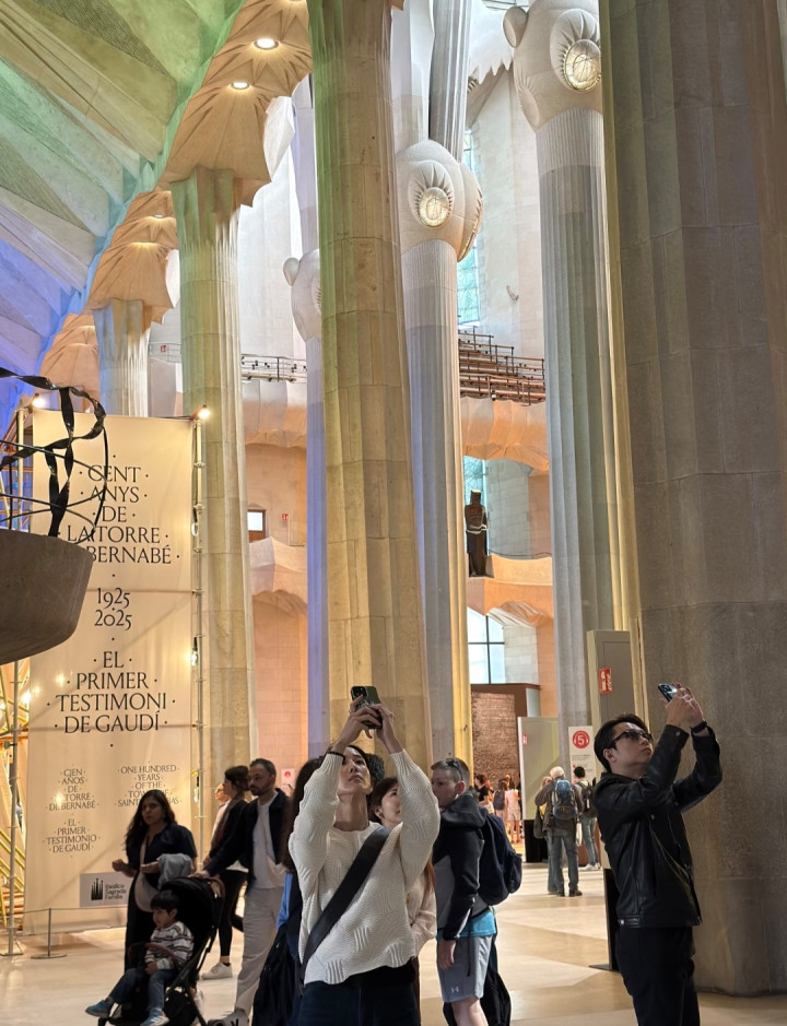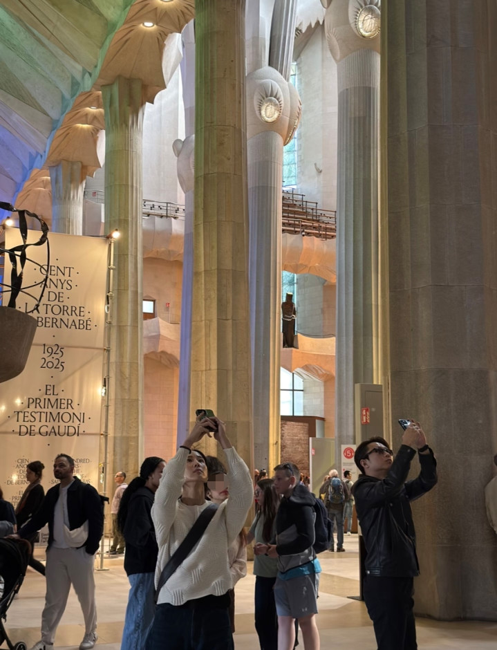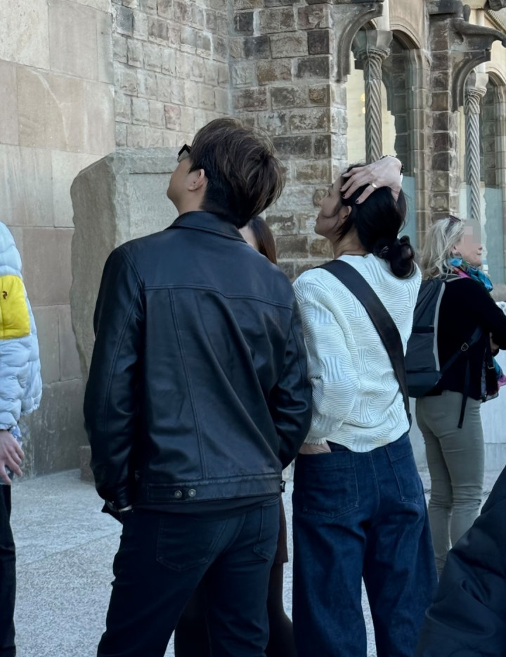 两人打卡圣家堂的时候,专门请了导游讲解。两人在一旁听得很认真。这么看,两人气质挺搭的。