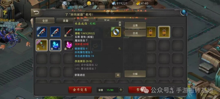 最关键的一点来了:你得学会看装备的好坏,不是所有爆出来的装备都值钱。如果是普通的装备,没有推荐核心属性的就是垃圾装备,我们打出来的装备,上面带有材料两个字的,才是稀有装备,才能卖出好价钱!