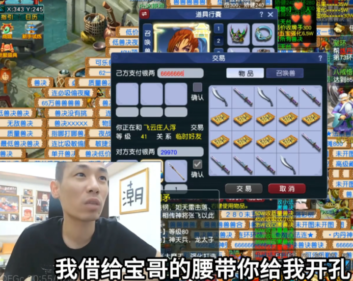 原来之前旭旭宝宝从商人那里交易了一件顶级腰带,而现在商人怒斥了,借给宝哥的腰带竟然被开孔了。这件装备也是变成高价值了,现在上架不了,不买还要开孔这是怎么做的啊。而经过宝哥的询问,大斌子连号都没有上怎么开的了孔。而这时候也有玩家提点了,这是商人在碰瓷黑价格呢。