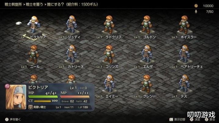 培养队员最重要的是勇气和信仰值,初始队友都是60左右的货,想要高能力的,得到战士介绍所去挑。但这次竟然给了一个勇气74的,和信仰71的大神,比主角还高了,我不知是随机还是大家的初始阵容都一样,而且这俩伙伴都是道具师,直接转职吧。