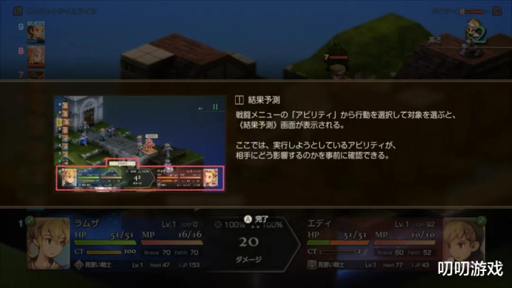 行动加了一个移动退回的选项,还是第一个。这个有点脱裤子放屁了,退回直接按B不就行了,攻击放第一个啊,弄得我常常按错。结果预测好评,可以直观看到攻击力,不过对方敏捷高还是有可能被闪避的。场景更加细腻了,配色有点鲜艳,我个人倒是喜欢PS版那种粗陋厚重的表现。不过这倒也无可厚非。