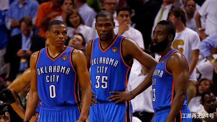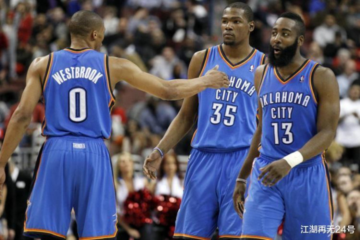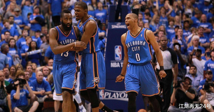 最后,再来说说这对组合究竟多么恐怖,在三少组合解体后,三人分别都成为了常规赛MVP,并且总计拿到了9次得分王头衔,威少更是成为了历史三双王,哈登则是连续多个赛季场均得分超过30+,打出了比肩甚至超越了05-06赛季科比·布莱恩特的表现,而杜兰特则4次夺得得分王,常年都是最佳第一阵容的成员之一。