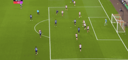 接下来的10分钟,场面有些胶着,但场上的天平在第36分钟发生变化,桑德兰利用简单的长传冲吊破门得分。