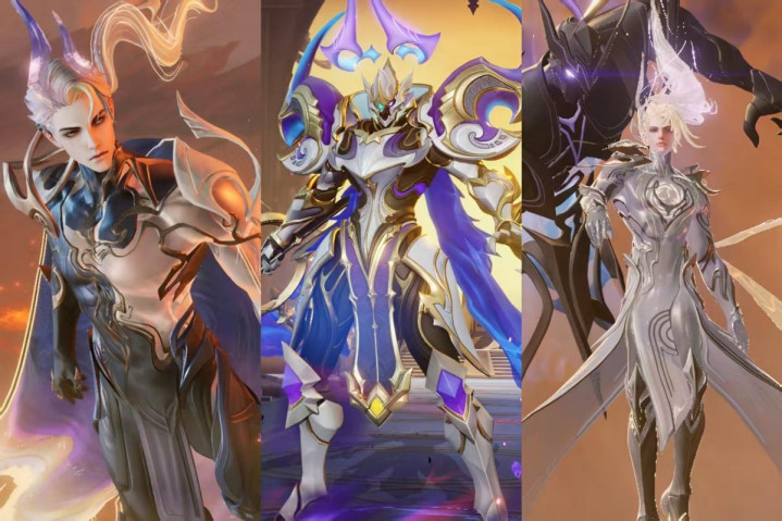 首先是海报方面,说句不夸张的话,神罪几乎是碾压银白咏叹调,神罪的海报是侧面画像,确实很有其主题“神明”的感觉,压迫感很足,而且整个画面的构图也很赏心悦目;至于银白咏叹调,画面很明显是战斗动作所截取的一帧,铠正在蓄势待发的感觉,相较于大多数皮肤海报动作其实也算是挺不错的了,但对比神罪亦有差距。