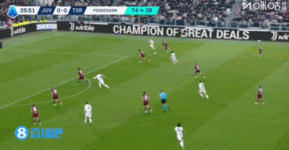 第59分钟,尤文分球右边路,小孔塞桑得球准备启动,直接带出了边线↓